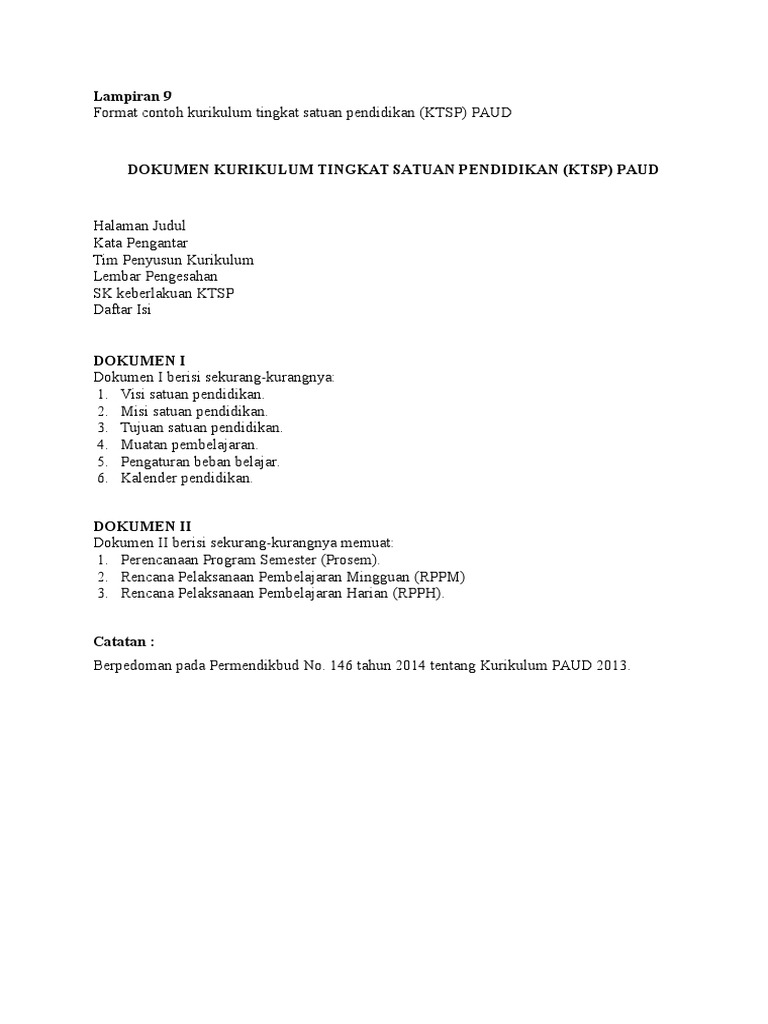 Kurikulum tingkat satuan pendidikan (ktsp) adalah kurikulum operasional yang disusun dan dilaksanakan oleh. .2013 (ktsp) paud format doc ini merupakan salah referensi yang baik dan benar sesuai harapan anda, bisa digunakan untuk administrasi paud, doc, download, ktsp, kurikulum 2013. Catatan :berpedoman pada permendikbud no. .kurikulum 2013 paud maka dokumen ktsp paud yang disusun oleh tim pengembang akan berbeda dengan ide esensial yang ditetapkan dalam kurikulum 2013 paud. Sistem pendidikan yang baik tentunya tidak hanya pada jenjang yang tinggi seperti sma dan juga perguruan tinggi.